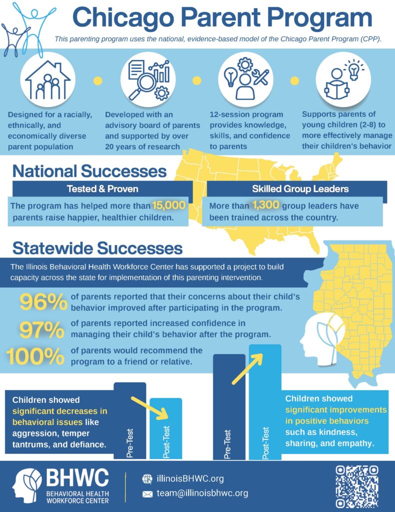 The Illinois Behavioral Health Workforce Center (BHWC) would like to extend an invitation to agencies and other organizations interested in expanding parent support programming to submit proposals in response to the attached Request for Proposals (RFP) opportunity. This is the fifth round of funding available for Chicago Parent Program implementation. Previous applicants or current awardees may apply again.