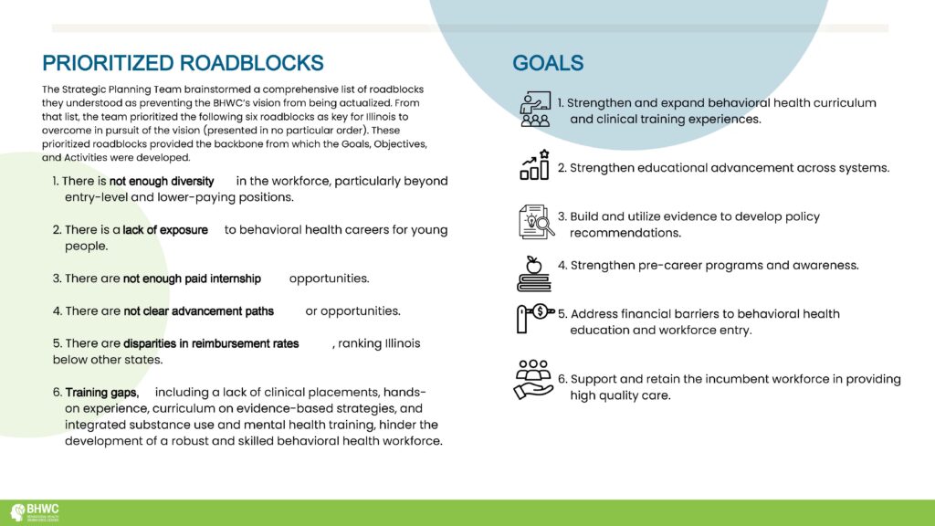 Through collaboration and data and equity-driven strategies, the strategic plan outlines a collaborative roadmap to expand, diversify and strengthen Illinois’s behavioral health workforce.